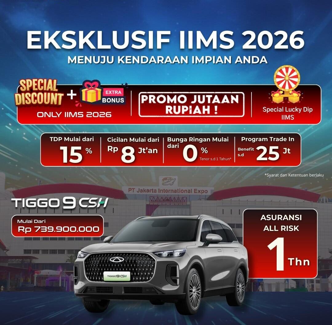 Lagi cari SUV Chery dengan skema kredit ringan dan bonus eksklusif pameran? Di Indonesia International Motor Show (IIMS) 2026, Chery menghadirkan program “Exclusive Road to IIMS” yang berlaku 05–15 Februari 2026 di JIExpo Kemayoran.